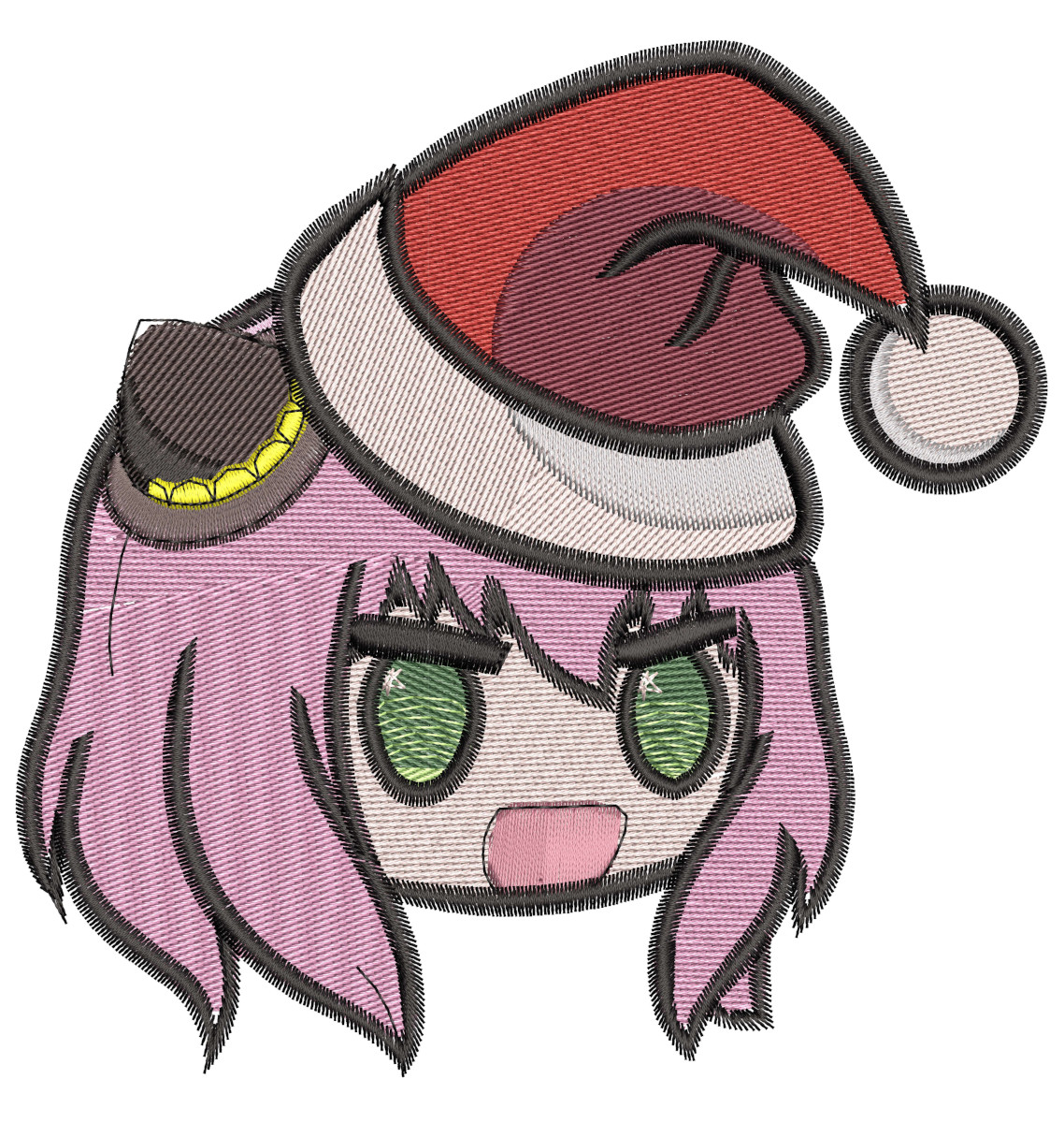 If you want to create your own custom anime embroidery project that features Spy Family Anya Forger Cgristmas hat face, here is what included in this package and pattern.