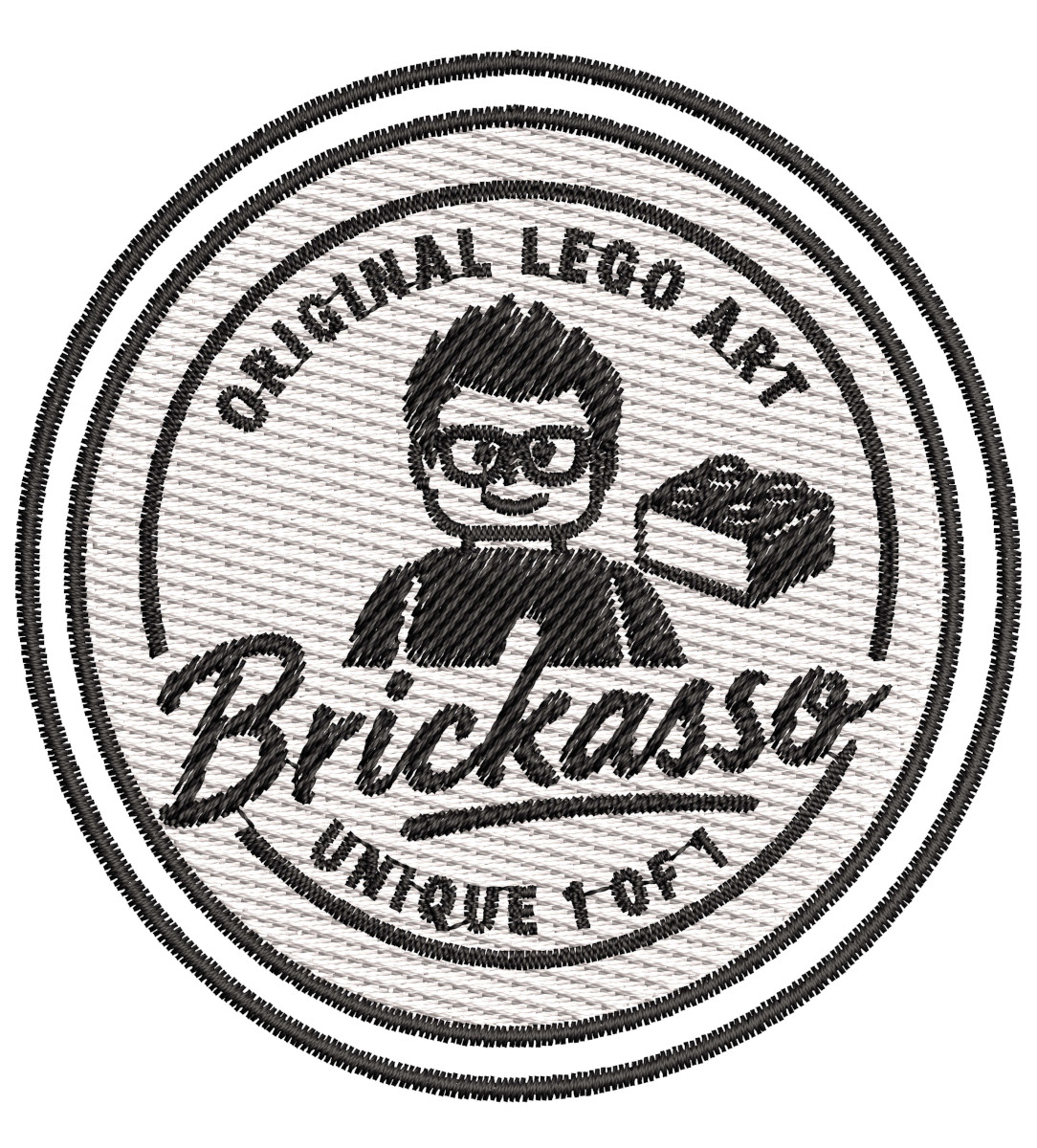 This custom machine embroidery design and pattern features the Lego Brickasso logo.