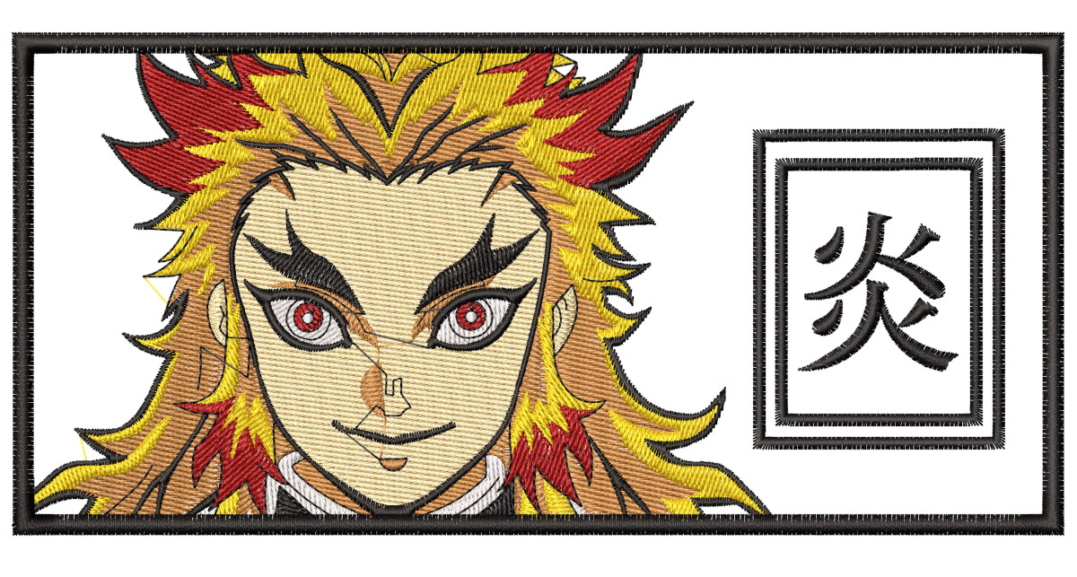 This custom anime machine embroidery design and pattern features the Demon Slayer character Kyojuro Rengoku glyph.