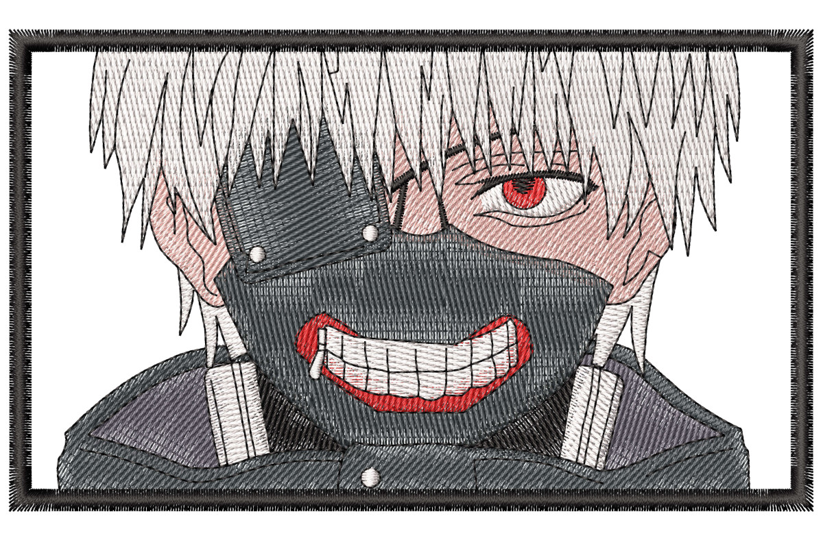 This custom anime machine embroidery design and pattern features the Tokyo Ghoul character Ken Kaneki with his mask.